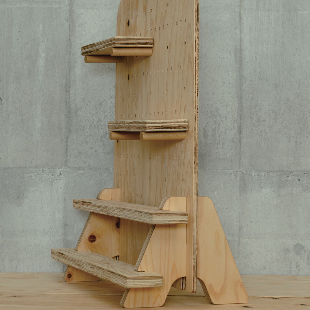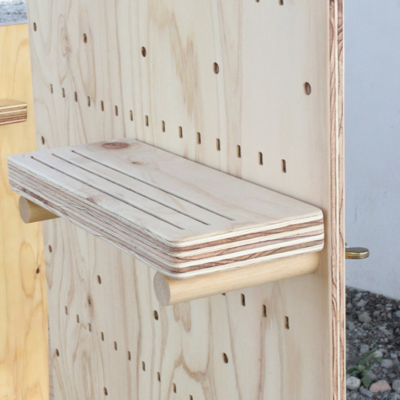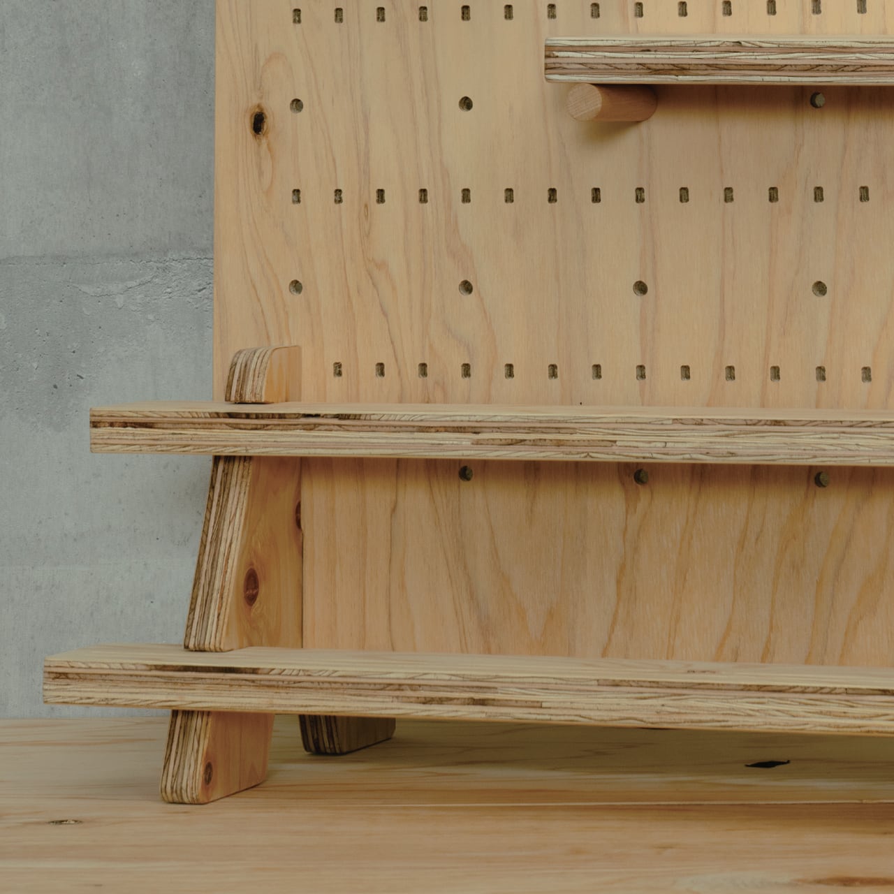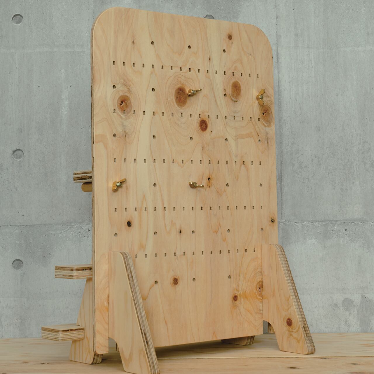 国産合板の豊かな木目が魅力の卓上型ペグボード。