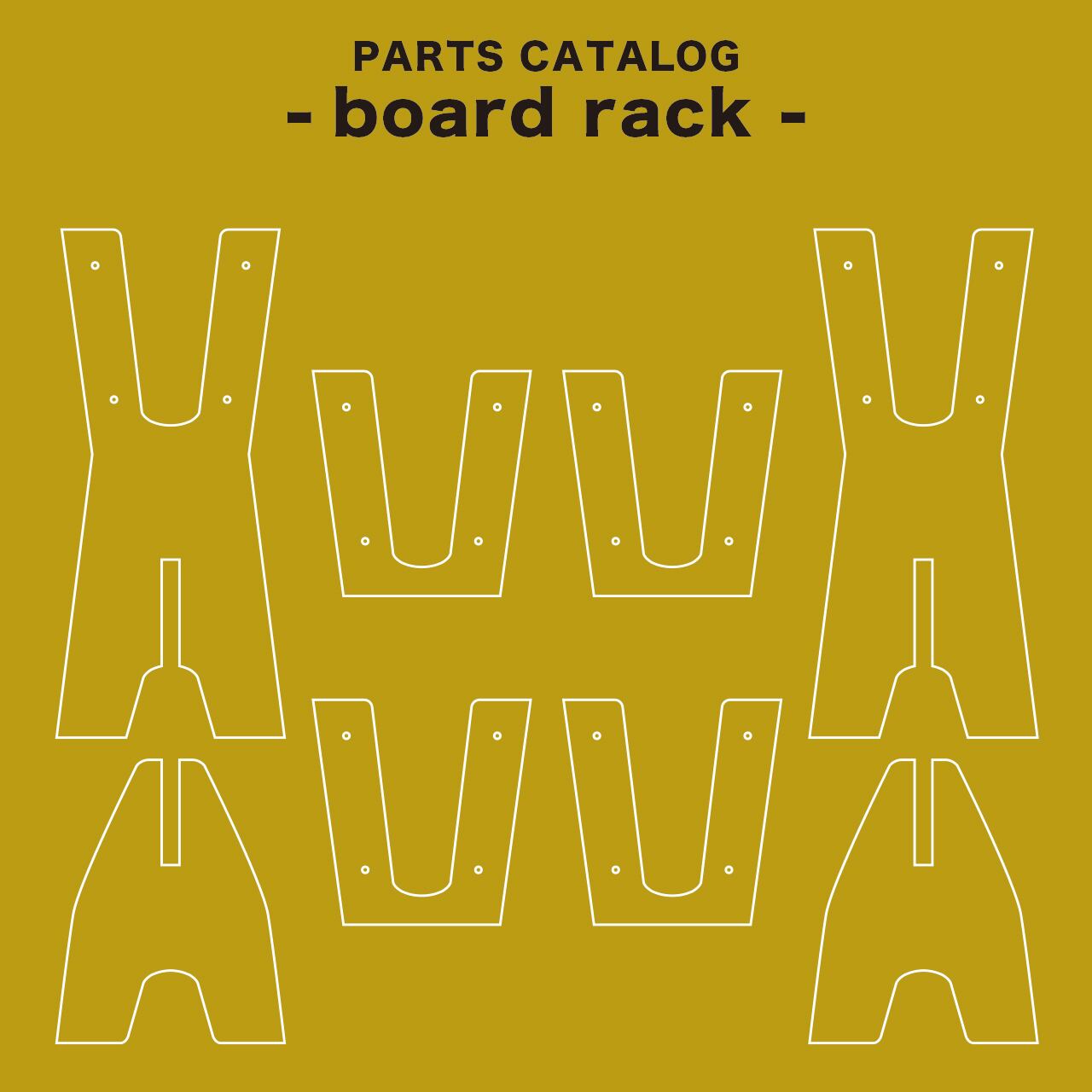 国産合板の豊かな木目と、真鍮色のペグがアクセントのサーフボードラック。