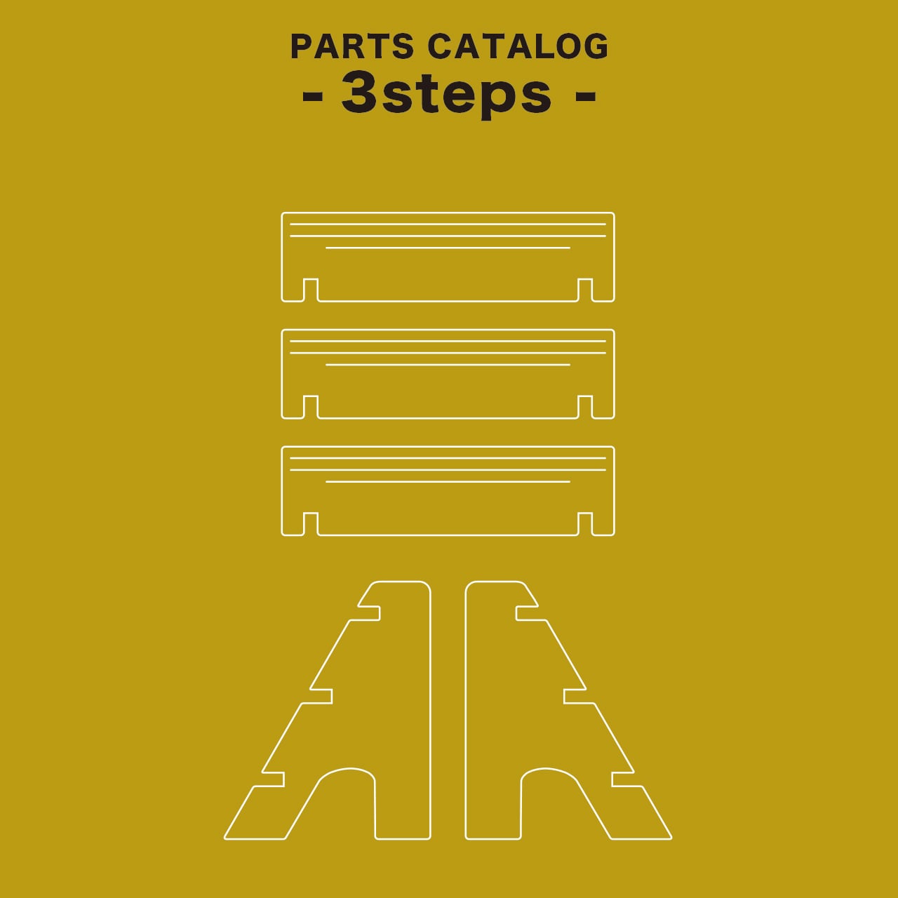 工具不要で簡単に組み立てられ、カウンターやテーブルの上に置けるコンパクトなサイズが特徴です。3段階のステップ状のデザインは、複数の商品を高低差をつけて「魅せる」効果を生み出し、限られたスペースでも効率的かつ魅力的な陳列を可能にします。
