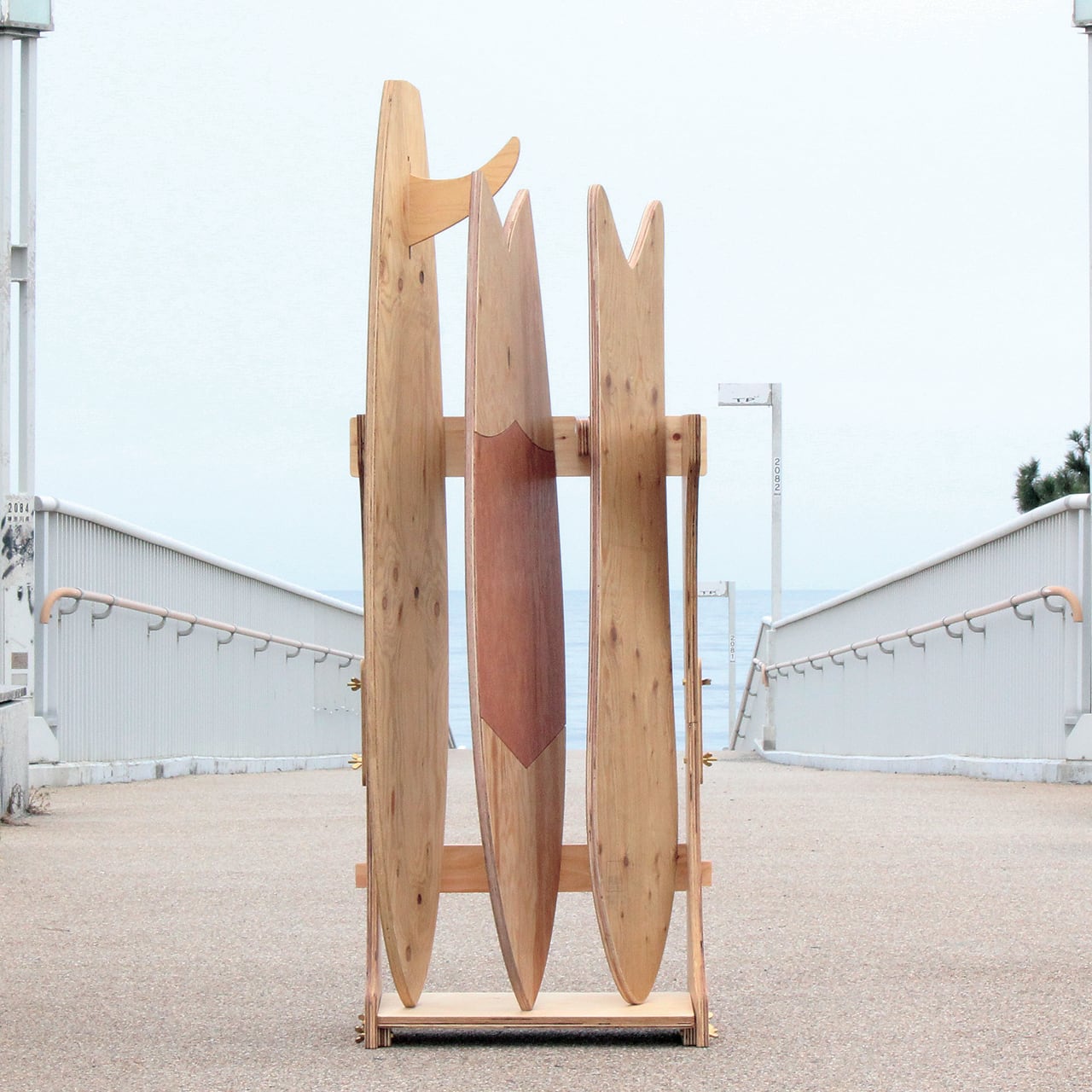 厚さ24mm、国産ヒノキの存在感が魅力のサーフボードラック。