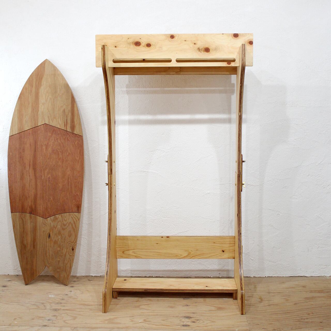 厚さ24mm、国産ヒノキの豊かな木目が魅力のハンガーラック。